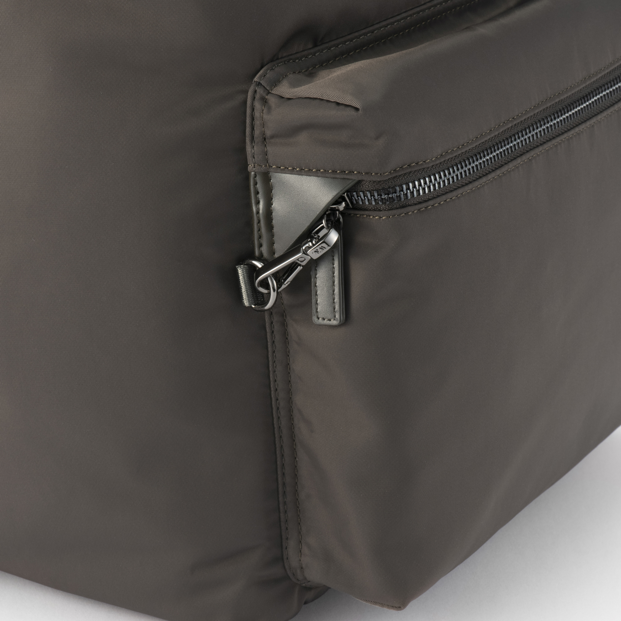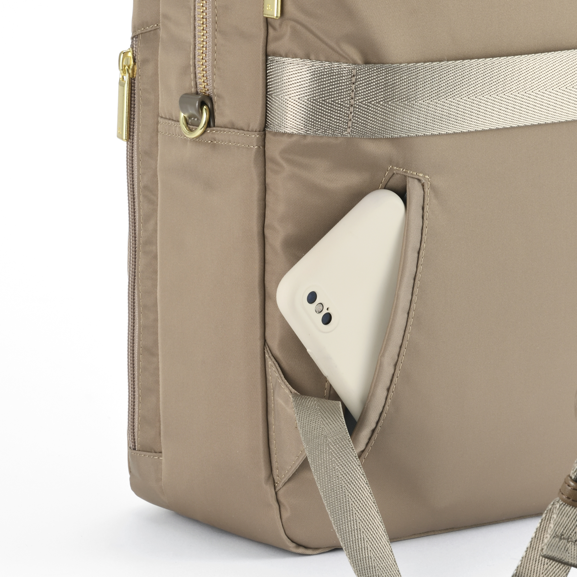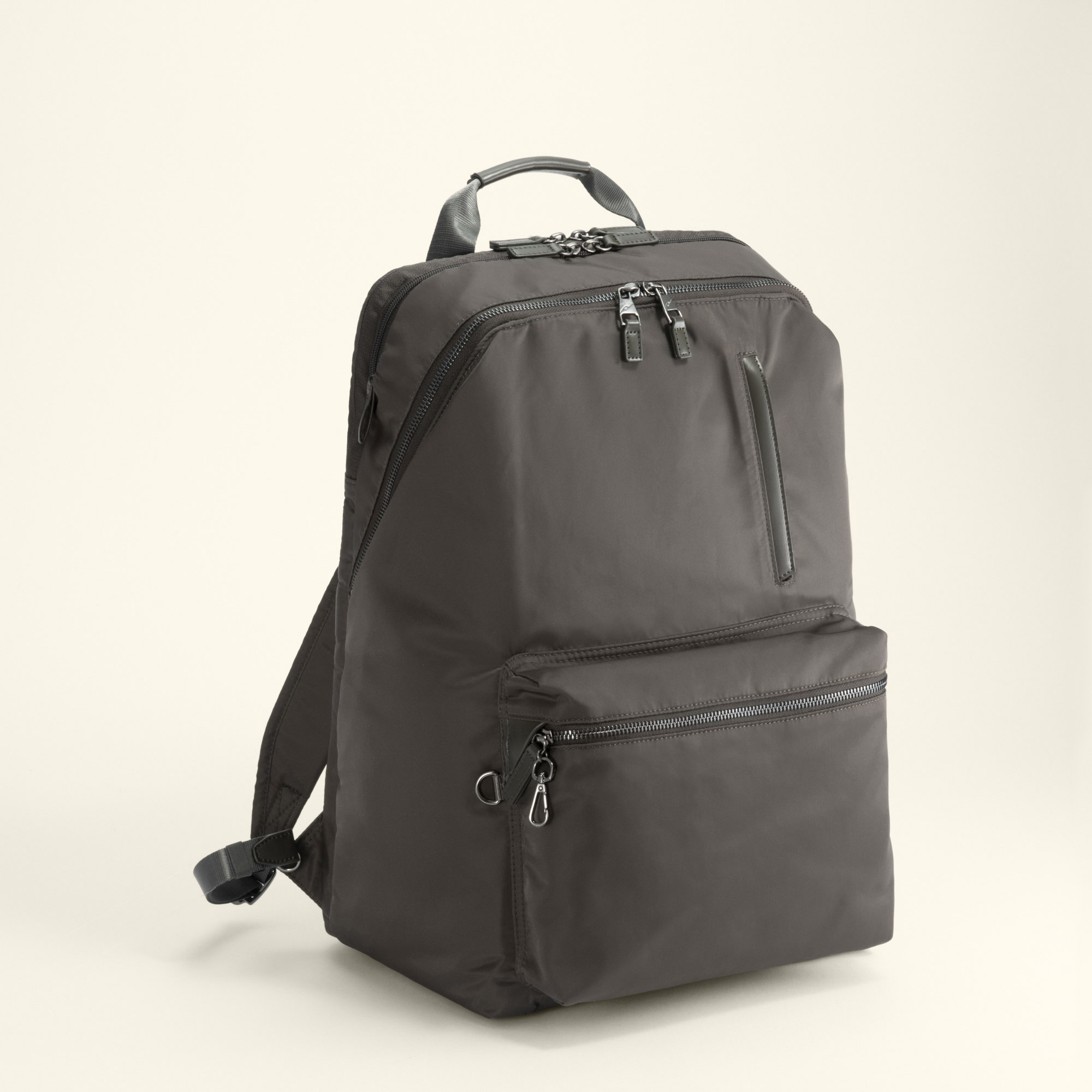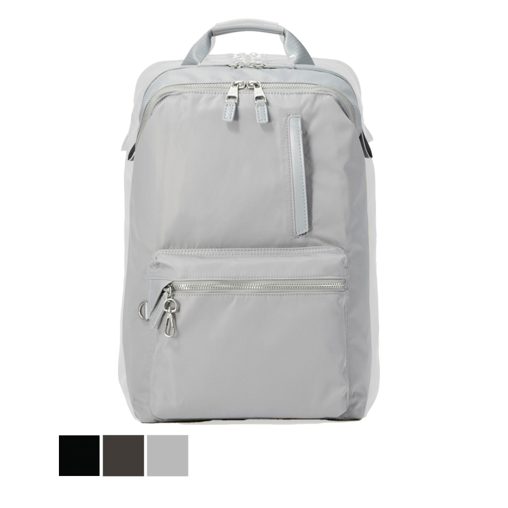 混雑した車内で、体の前に抱えた時も使いやすいポケット配置とすっきりシルエット。